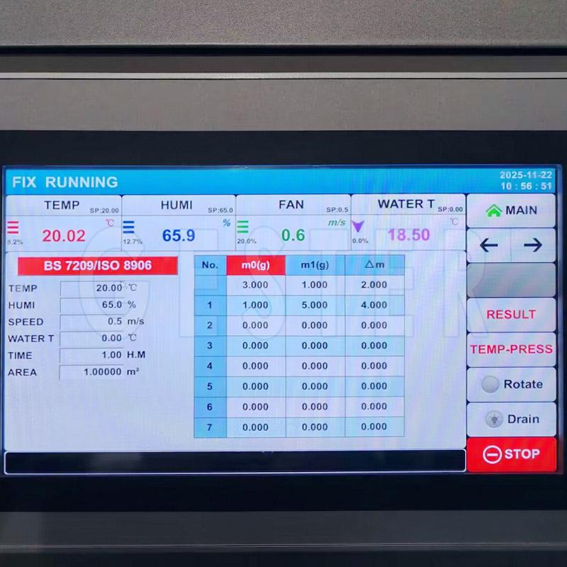 GB/T12704, GB/T21655, ASTM E96 (Procedure A, B, C, D, E), JIS L1099 Method A, BS 7209, ISO 8096